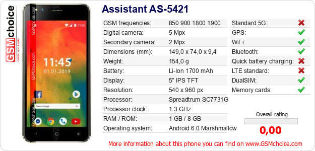 Do you have your website? Do you want to insert information about basic phone data of Assistant AS-5421 somewhere? It is very easy. You can download the picture, or copy and paste the code below on the page:Pasting this code will display the following image: