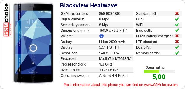 Do you have your website? Do you want to insert information about basic phone data of Blackview Heatwave somewhere? It is very easy. You can download the picture, or copy and paste the code below on the page:Pasting this code will display the following image: