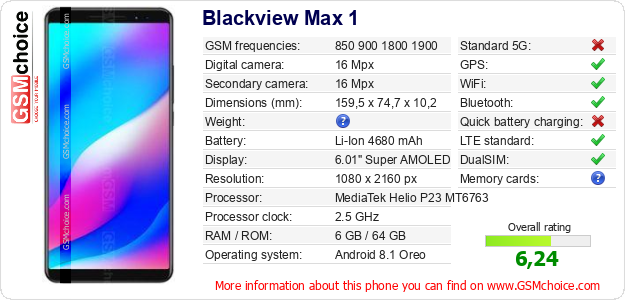 Do you have your website? Do you want to insert information about basic phone data of Blackview Max 1 somewhere? It is very easy. You can download the picture, or copy and paste the code below on the page:Pasting this code will display the following image: