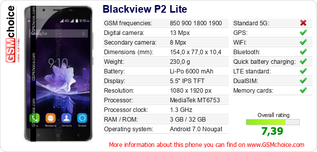 Do you have your website? Do you want to insert information about basic phone data of Blackview P2 Lite somewhere? It is very easy. You can download the picture, or copy and paste the code below on the page:Pasting this code will display the following image:
