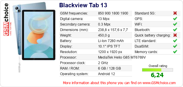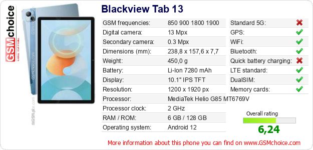 Do you have your website? Do you want to insert information about basic phone data of Blackview Tab 13 somewhere? It is very easy. You can download the picture, or copy and paste the code below on the page:Pasting this code will display the following image: