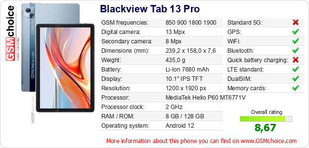 Do you have your website? Do you want to insert information about basic phone data of Blackview Tab 13 Pro somewhere? It is very easy. You can download the picture, or copy and paste the code below on the page:Pasting this code will display the following image: