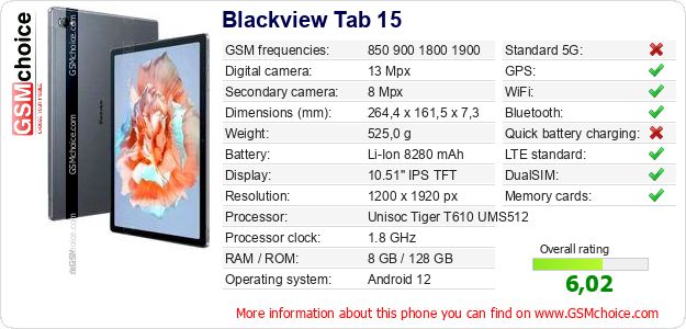 Do you have your website? Do you want to insert information about basic phone data of Blackview Tab 15 somewhere? It is very easy. You can download the picture, or copy and paste the code below on the page:Pasting this code will display the following image: