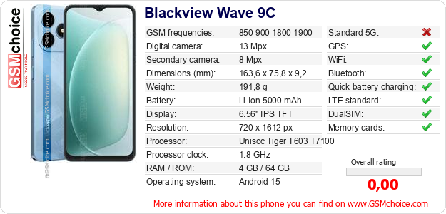Do you have your website? Do you want to insert information about basic phone data of Blackview Wave 9C somewhere? It is very easy. You can download the picture, or copy and paste the code below on the page:Pasting this code will display the following image: