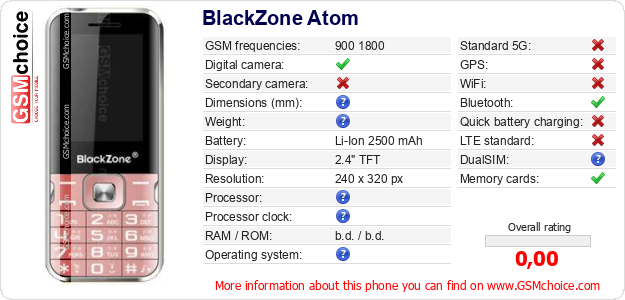 Do you have your website? Do you want to insert information about basic phone data of BlackZone Atom somewhere? It is very easy. You can download the picture, or copy and paste the code below on the page:Pasting this code will display the following image: