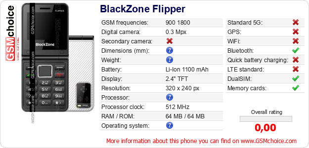 Do you have your website? Do you want to insert information about basic phone data of BlackZone Flipper somewhere? It is very easy. You can download the picture, or copy and paste the code below on the page:Pasting this code will display the following image: