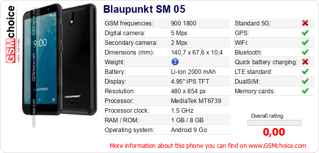 Do you have your website? Do you want to insert information about basic phone data of Blaupunkt SM 05 somewhere? It is very easy. You can download the picture, or copy and paste the code below on the page:Pasting this code will display the following image: