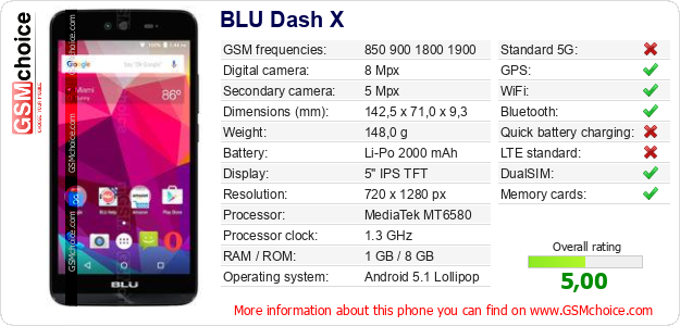Do you have your website? Do you want to insert information about basic phone data of BLU Dash X somewhere? It is very easy. You can download the picture, or copy and paste the code below on the page:Pasting this code will display the following image: