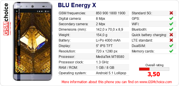 Do you have your website? Do you want to insert information about basic phone data of BLU Energy X somewhere? It is very easy. You can download the picture, or copy and paste the code below on the page:Pasting this code will display the following image: