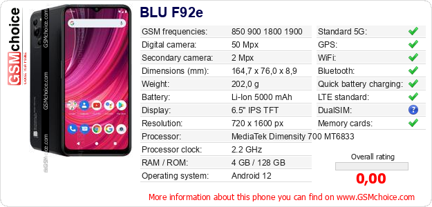 Do you have your website? Do you want to insert information about basic phone data of BLU F92e somewhere? It is very easy. You can download the picture, or copy and paste the code below on the page:Pasting this code will display the following image: