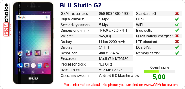 Do you have your website? Do you want to insert information about basic phone data of BLU Studio G2 somewhere? It is very easy. You can download the picture, or copy and paste the code below on the page:Pasting this code will display the following image: