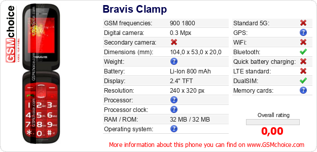 Do you have your website? Do you want to insert information about basic phone data of Bravis Clamp somewhere? It is very easy. You can download the picture, or copy and paste the code below on the page:Pasting this code will display the following image:
