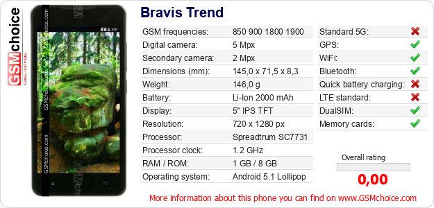 Do you have your website? Do you want to insert information about basic phone data of Bravis Trend somewhere? It is very easy. You can download the picture, or copy and paste the code below on the page:Pasting this code will display the following image: