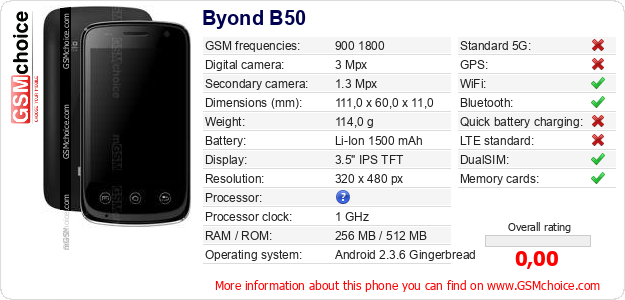 Do you have your website? Do you want to insert information about basic phone data of Byond B50 somewhere? It is very easy. You can download the picture, or copy and paste the code below on the page:Pasting this code will display the following image: