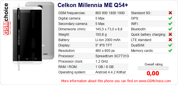 Do you have your website? Do you want to insert information about basic phone data of Celkon Millennia ME Q54+ somewhere? It is very easy. You can download the picture, or copy and paste the code below on the page:Pasting this code will display the following image: