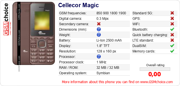 Do you have your website? Do you want to insert information about basic phone data of Cellecor Magic somewhere? It is very easy. You can download the picture, or copy and paste the code below on the page:Pasting this code will display the following image: