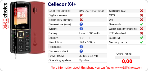 Do you have your website? Do you want to insert information about basic phone data of Cellecor X4+ somewhere? It is very easy. You can download the picture, or copy and paste the code below on the page:Pasting this code will display the following image: