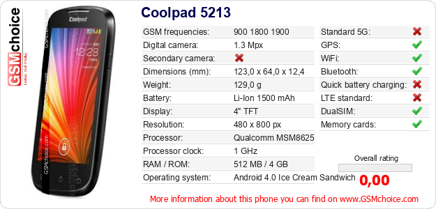 Do you have your website? Do you want to insert information about basic phone data of Coolpad 5213 somewhere? It is very easy. You can download the picture, or copy and paste the code below on the page:Pasting this code will display the following image: