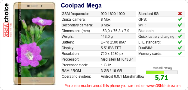 Do you have your website? Do you want to insert information about basic phone data of Coolpad Mega somewhere? It is very easy. You can download the picture, or copy and paste the code below on the page:Pasting this code will display the following image:
