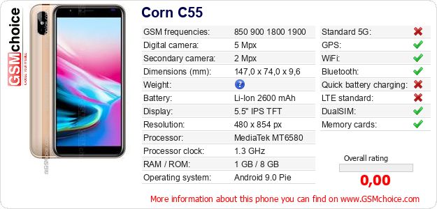 Do you have your website? Do you want to insert information about basic phone data of Corn C55 somewhere? It is very easy. You can download the picture, or copy and paste the code below on the page:Pasting this code will display the following image: