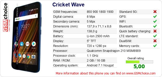Do you have your website? Do you want to insert information about basic phone data of Cricket Wave somewhere? It is very easy. You can download the picture, or copy and paste the code below on the page:Pasting this code will display the following image: