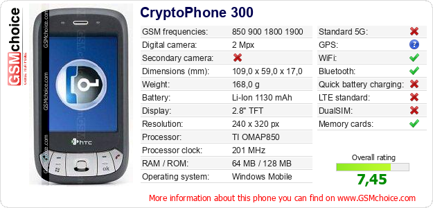 Do you have your website? Do you want to insert information about basic phone data of CryptoPhone 300 somewhere? It is very easy. You can download the picture, or copy and paste the code below on the page:Pasting this code will display the following image: