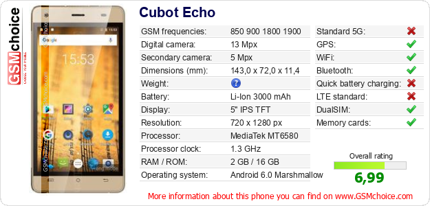Do you have your website? Do you want to insert information about basic phone data of Cubot Echo somewhere? It is very easy. You can download the picture, or copy and paste the code below on the page:Pasting this code will display the following image: