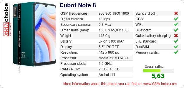 Do you have your website? Do you want to insert information about basic phone data of Cubot Note 8 somewhere? It is very easy. You can download the picture, or copy and paste the code below on the page:Pasting this code will display the following image: