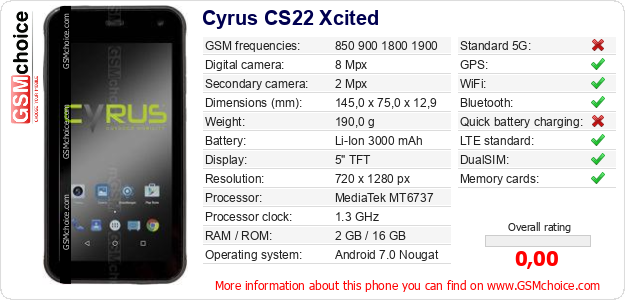 Do you have your website? Do you want to insert information about basic phone data of Cyrus CS22 Xcited somewhere? It is very easy. You can download the picture, or copy and paste the code below on the page:Pasting this code will display the following image: