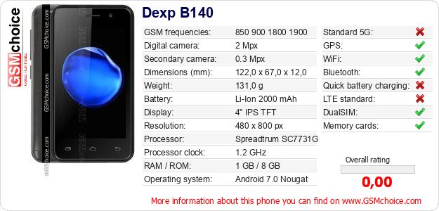Do you have your website? Do you want to insert information about basic phone data of Dexp B140 somewhere? It is very easy. You can download the picture, or copy and paste the code below on the page:Pasting this code will display the following image:
