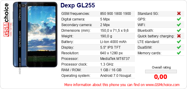 Do you have your website? Do you want to insert information about basic phone data of Dexp GL255 somewhere? It is very easy. You can download the picture, or copy and paste the code below on the page:Pasting this code will display the following image: