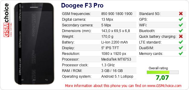 Do you have your website? Do you want to insert information about basic phone data of Doogee F3 Pro somewhere? It is very easy. You can download the picture, or copy and paste the code below on the page:Pasting this code will display the following image: