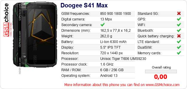 Do you have your website? Do you want to insert information about basic phone data of Doogee S41 Max somewhere? It is very easy. You can download the picture, or copy and paste the code below on the page:Pasting this code will display the following image: