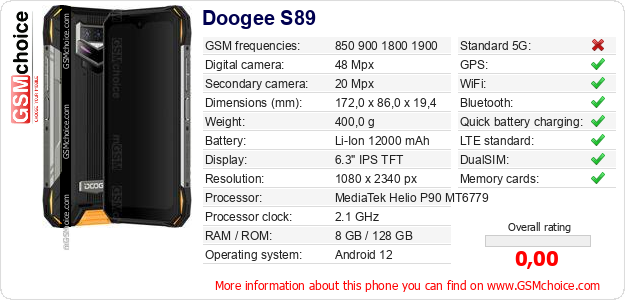 Do you have your website? Do you want to insert information about basic phone data of Doogee S89 somewhere? It is very easy. You can download the picture, or copy and paste the code below on the page:Pasting this code will display the following image: