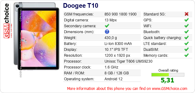Do you have your website? Do you want to insert information about basic phone data of Doogee T10 somewhere? It is very easy. You can download the picture, or copy and paste the code below on the page:Pasting this code will display the following image: