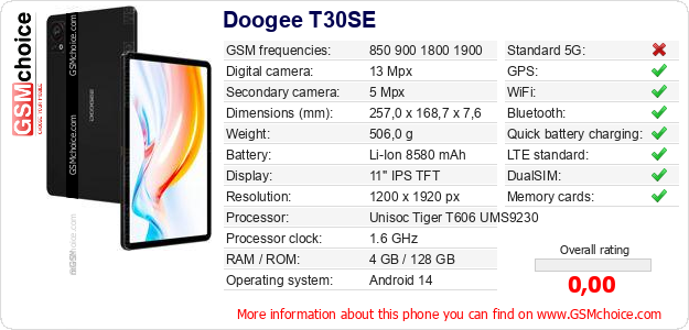 Do you have your website? Do you want to insert information about basic phone data of Doogee T30SE somewhere? It is very easy. You can download the picture, or copy and paste the code below on the page:Pasting this code will display the following image: