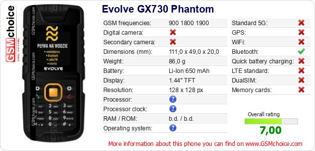 Do you have your website? Do you want to insert information about basic phone data of Evolve GX730 Phantom somewhere? It is very easy. You can download the picture, or copy and paste the code below on the page:Pasting this code will display the following image: