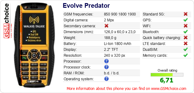 Do you have your website? Do you want to insert information about basic phone data of Evolve Predator somewhere? It is very easy. You can download the picture, or copy and paste the code below on the page:Pasting this code will display the following image: