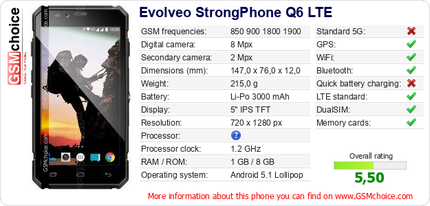 Do you have your website? Do you want to insert information about basic phone data of Evolveo StrongPhone Q6 LTE somewhere? It is very easy. You can download the picture, or copy and paste the code below on the page:Pasting this code will display the following image: