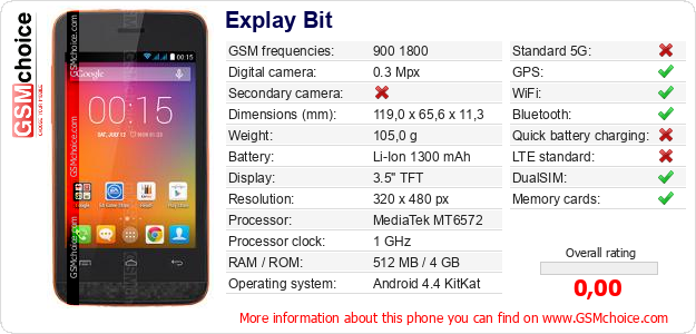 Do you have your website? Do you want to insert information about basic phone data of Explay Bit somewhere? It is very easy. You can download the picture, or copy and paste the code below on the page:Pasting this code will display the following image: