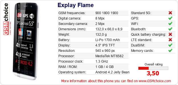 Do you have your website? Do you want to insert information about basic phone data of Explay Flame somewhere? It is very easy. You can download the picture, or copy and paste the code below on the page:Pasting this code will display the following image: