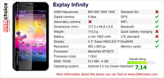 Do you have your website? Do you want to insert information about basic phone data of Explay Infinity somewhere? It is very easy. You can download the picture, or copy and paste the code below on the page:Pasting this code will display the following image: