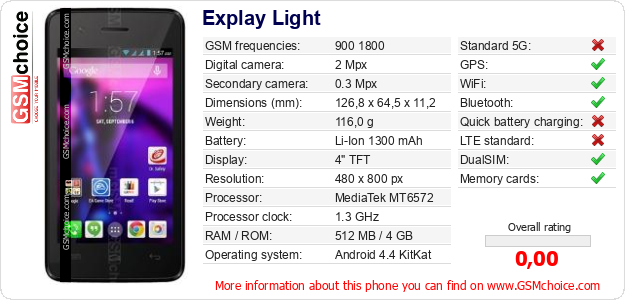Do you have your website? Do you want to insert information about basic phone data of Explay Light somewhere? It is very easy. You can download the picture, or copy and paste the code below on the page:Pasting this code will display the following image: