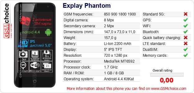 Do you have your website? Do you want to insert information about basic phone data of Explay Phantom somewhere? It is very easy. You can download the picture, or copy and paste the code below on the page:Pasting this code will display the following image: