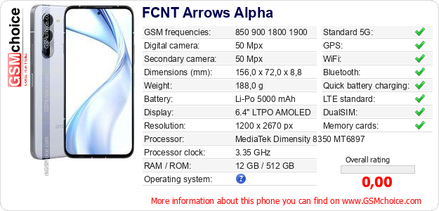 Do you have your website? Do you want to insert information about basic phone data of FCNT Arrows Alpha somewhere? It is very easy. You can download the picture, or copy and paste the code below on the page:Pasting this code will display the following image:
