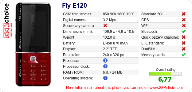 Do you have your website? Do you want to insert information about basic phone data of Fly E120 somewhere? It is very easy. You can download the picture, or copy and paste the code below on the page:Pasting this code will display the following image: