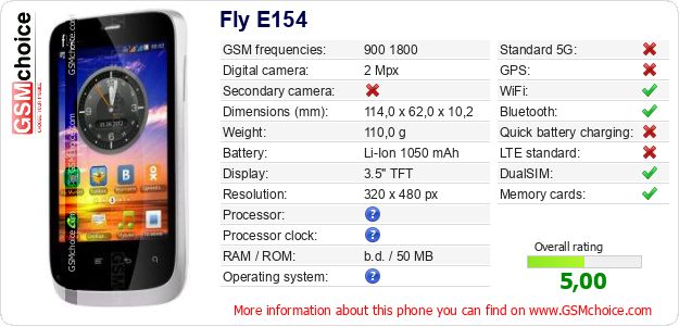 Do you have your website? Do you want to insert information about basic phone data of Fly E154 somewhere? It is very easy. You can download the picture, or copy and paste the code below on the page:Pasting this code will display the following image: