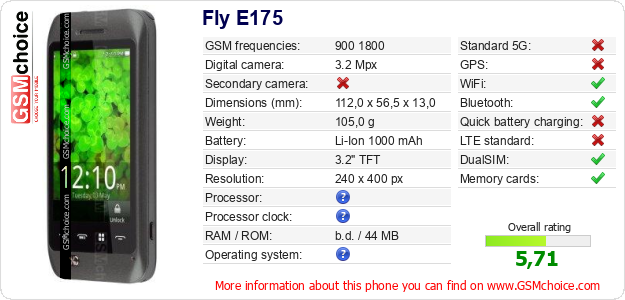 Do you have your website? Do you want to insert information about basic phone data of Fly E175 somewhere? It is very easy. You can download the picture, or copy and paste the code below on the page:Pasting this code will display the following image: