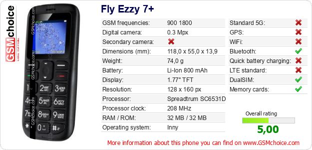 Do you have your website? Do you want to insert information about basic phone data of Fly Ezzy 7+ somewhere? It is very easy. You can download the picture, or copy and paste the code below on the page:Pasting this code will display the following image: