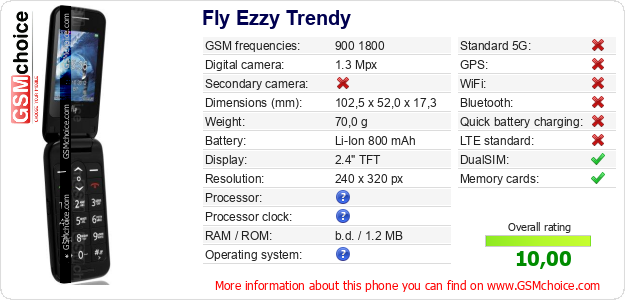 Do you have your website? Do you want to insert information about basic phone data of Fly Ezzy Trendy somewhere? It is very easy. You can download the picture, or copy and paste the code below on the page:Pasting this code will display the following image: